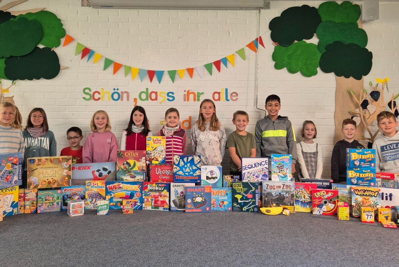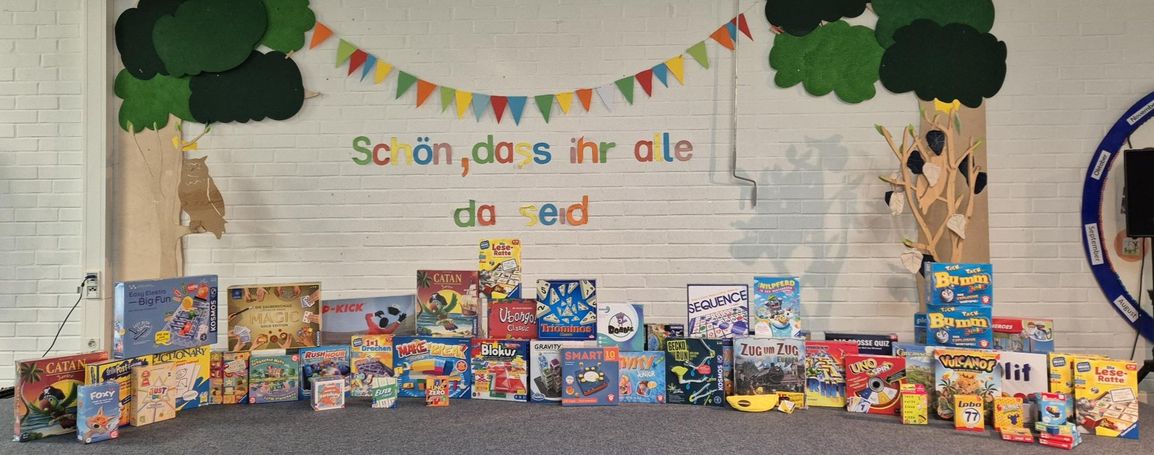 Unser toller Gewinn hat uns so sehr in Spiellaune versetzt, dass wir gleich mit einem Spielecafé in die Herbstferien gestartet sind. Jedes Kind und natürlich auch die Lehrkräfte konnten ihre Lieblingsspiele am letzten Schultag vor den Ferien mit in die Schule bringen und dann wurde (ganz analog) "gezockt".