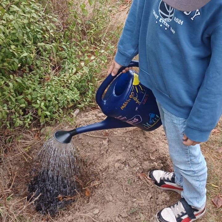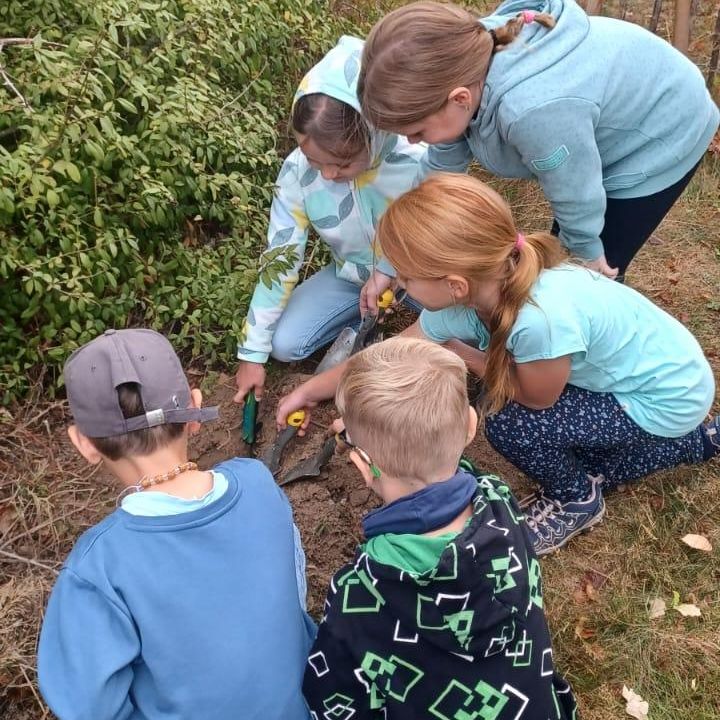 Am Dienstag hat Klasse 2 in ihrer Schulgartenstunde einen Heidelbeerstrauch im grünen Klassenzimmer gepflanzt.