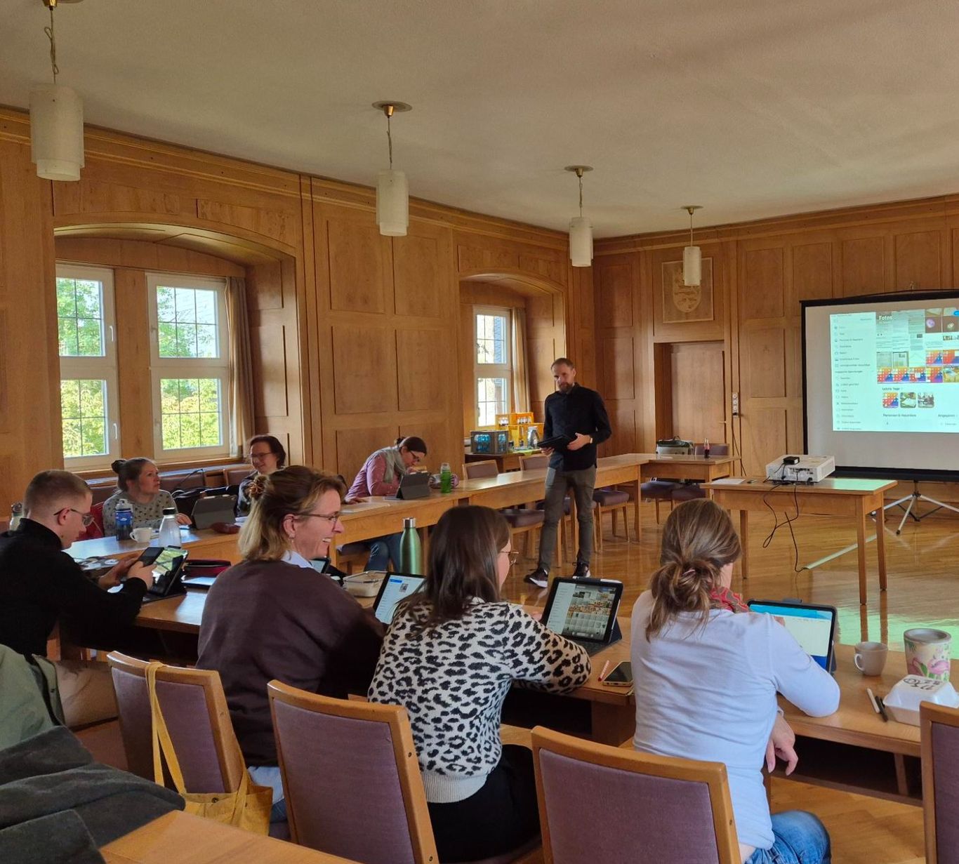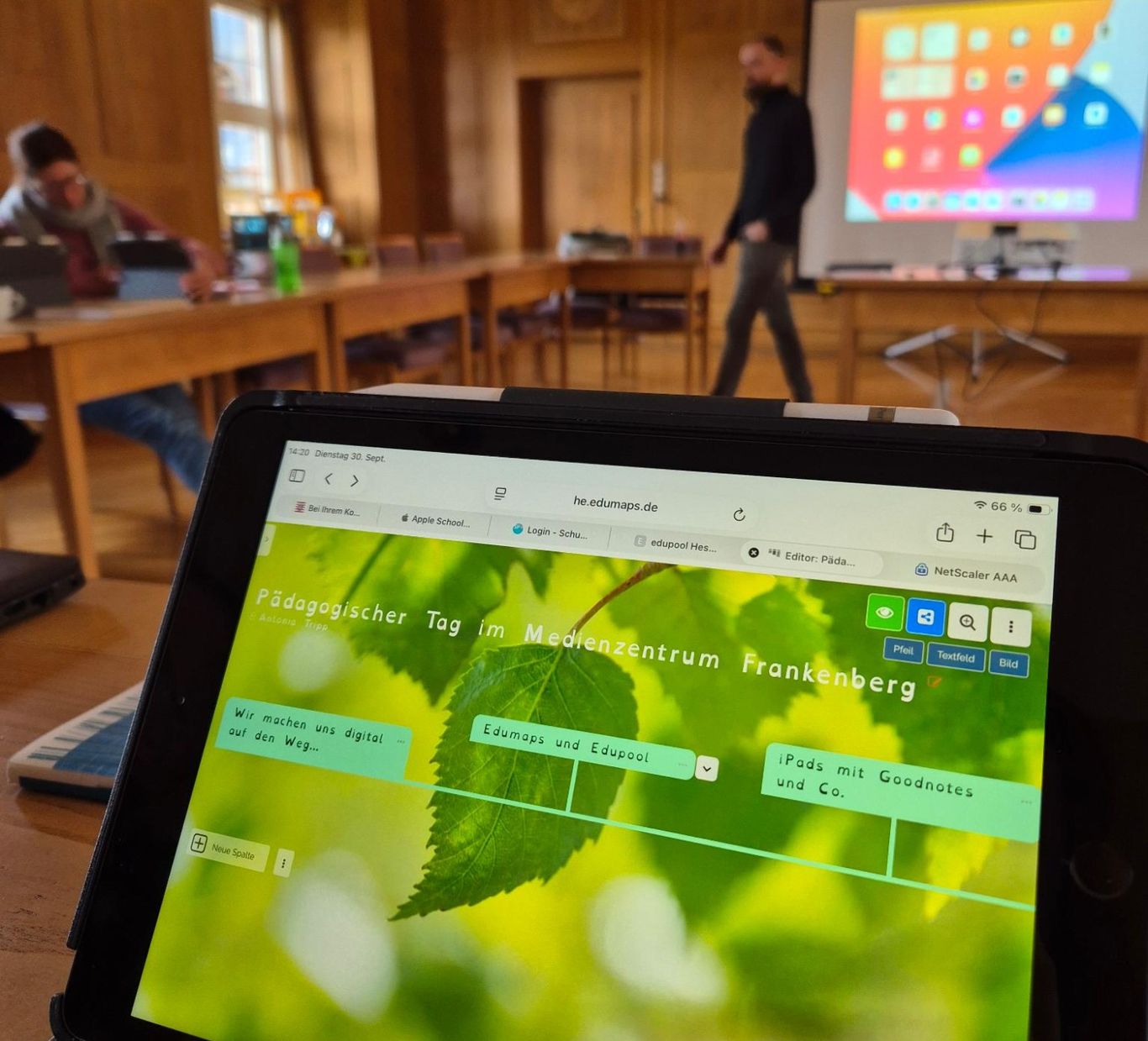 Kurz vor dem Start in die Herbstferien fand unser Pädagogischer Tag im Medienzentrum in Frankenberg statt. Wir trafen uns im großen Sitzungssaal, wo wir gemeinsam mit Alexander Emde (Leiter des Medienzentrums), Daniel Vach (Medienfachberatung) und Jonas Spiegelberg viel Zeit für unser Thema "Wir machen uns digital auf den Weg" hatten.