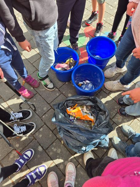 Auf unserem Schulhof liegt leider immer wieder sehr viel Müll. Deshalb haben wir einen Müllspaziergang gemacht, den ganzen Müll eingesammelt und alles in die richtigen Tonnen geworfen. Ihr könnt auf den Bildern sehen, wie viel Müll wir bei nur einem Spaziergang gefunden haben.